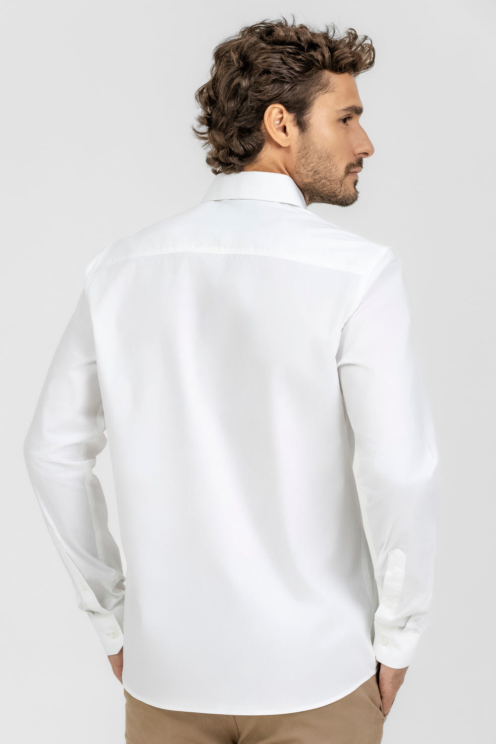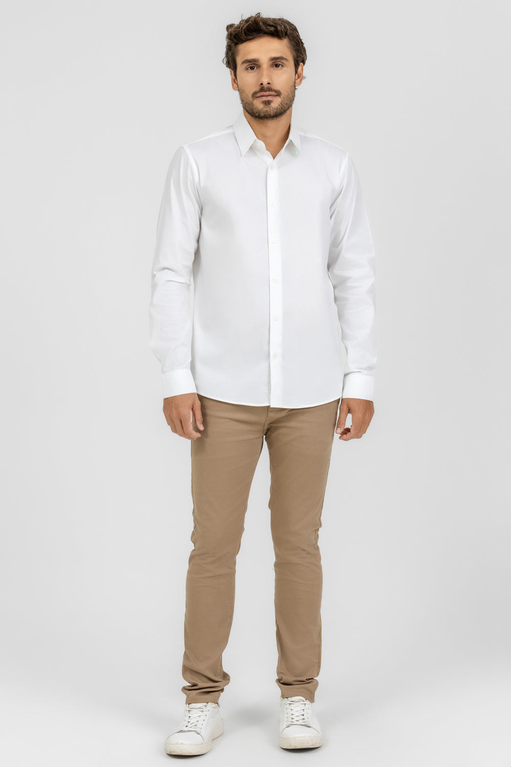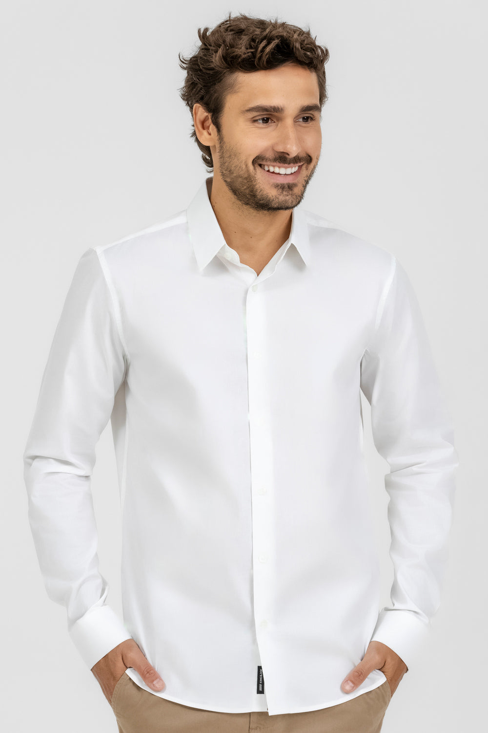 Esta camisa social masculina slim de manga longa, confeccionada com 97% algodão e 3% elastano, oferece um ajuste moderno e confortável. O elastano proporciona elasticidade que garante liberdade de movimento, enquanto o acabamento slim valoriza a silhueta. Ideal para ambientes profissionais e eventos formais, combina elegância com conforto duradouro ao longo do dia.