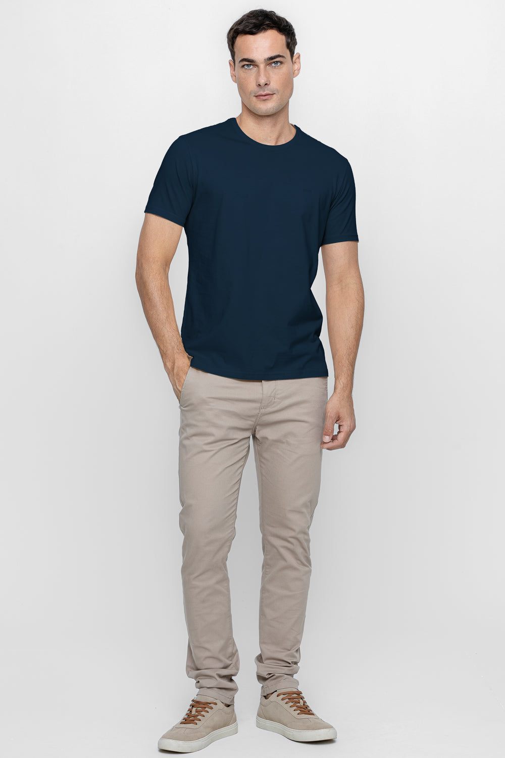 Esta camiseta básica em algodão 100% oferece conforto e durabilidade excepcionais. Com um tecido macio e respirável, é ideal para o uso diário, garantindo liberdade de movimento e sensação agradável na pele. O bordado marinho adiciona um toque de sofisticação discreta, tornando a peça versátil para diversas ocasiões.